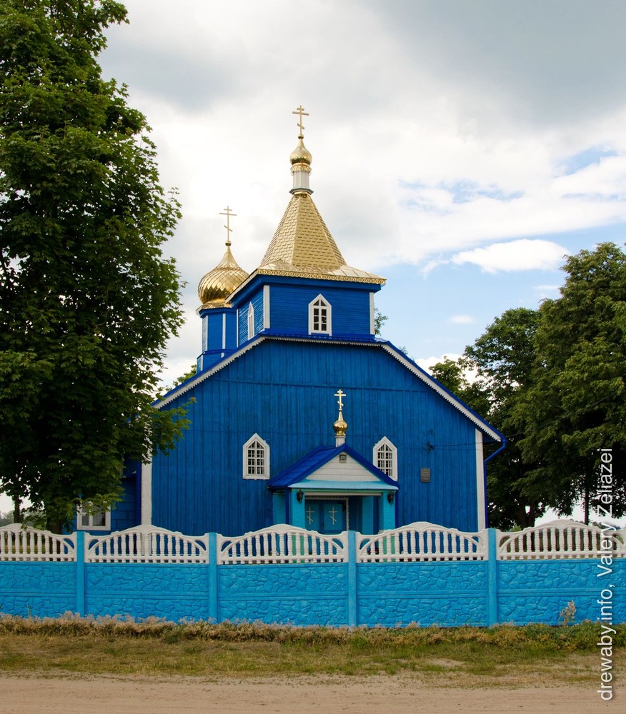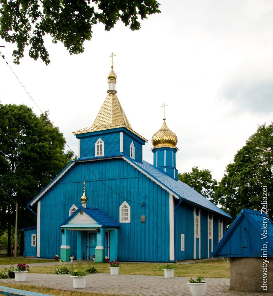 Помнік народнага дойлідства. Адназрубны прамавугольны ў плане аб'ём пераходзіць у трохгранную апсіду, вальмавае пакрыццё якой з'яўляецца працягам двухсхільнага даху асноўнага аб'ёму. Над галоўным фасадам у дах урэзана 1-ярусная чацверыковая званіца з васьмігранным шатром, завершаным макаўкай. У цэнтры дах праразае двух'ярусны васьмярык з гранёным цыбулепадобным купалам. У 1968 г. перад уваходам у храм пабудаваны двухслуповы ганак пад двухсхільным пакрыццём, завершаным макаўкай. Пабеленыя вертыкальныя брусы-сцяжкі, простыя ліштвы прамавугольных і стральчатых аконных праёмаў надаюць будынку графічны геаметрызаваны характар, што падкрэслівае і вертыкальная шалёўка фасадаў. У агульны аб'ём царквы ўпісаны невялікі прытвор з бакавымі каморамі і галерэяй хораў над імі.
