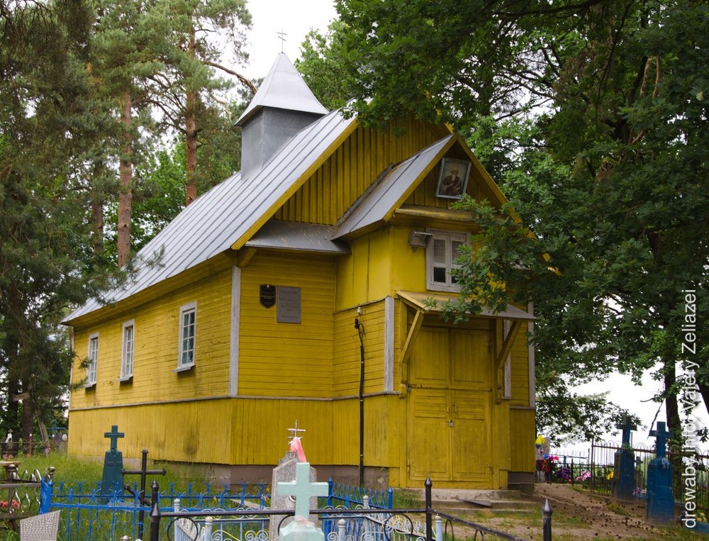 Уніяцкім храм быў да 1839 года. Архітэктура царквы простая, у традыцыях драўлянага народнага дойлідства: зруб з трохграннай апсідай і прамавугольным двух’ярусным бабінцам. Пакрыты металічным двускатным дахам. Звонку храм абшаляваны і пафарбаваны ў сонечны колер.