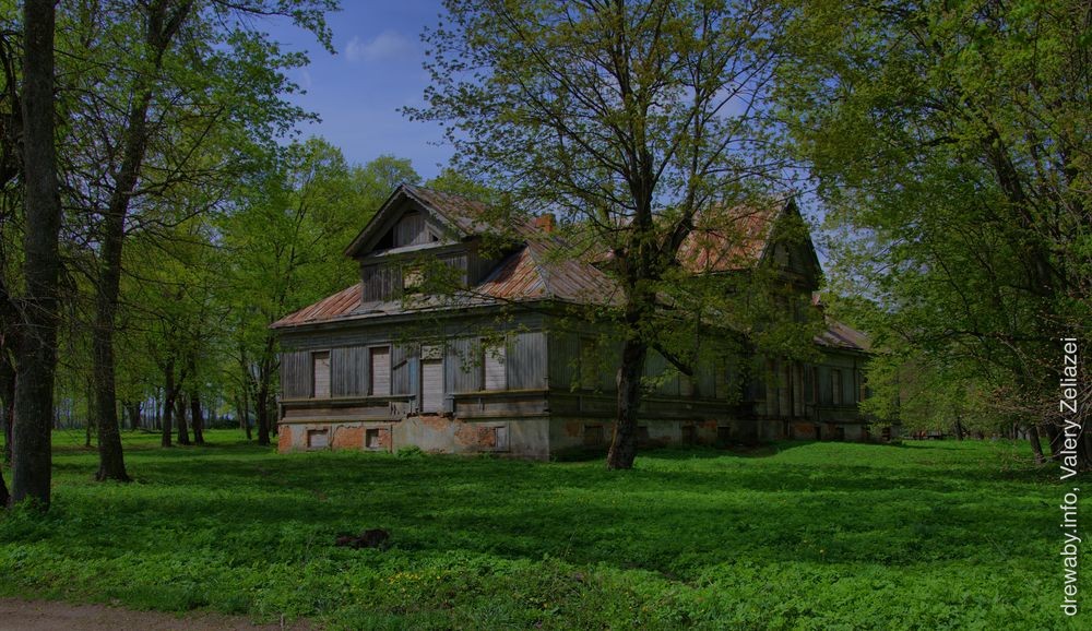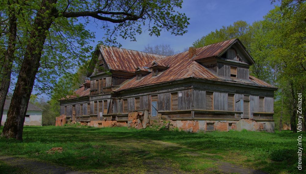 Палац пабудаваны ў канцы XIX — пачатку XX ст. на месцы мураванага класіцыстычнага палаца канца XVIII ст (вядомы па акварэлі Н. Орды). Аднапавярховы, прамавугольны ў плане, накрыты вальмавым дахам, мае рысы стылю мадэрн. Цэнтральная частка вылучаная мансардавым паверхам і вялікай тэрасай на чатырох тонкіх разных слупах. Абапал галоўнага ўваходу — крывалінейныя лесвіцы. Планіроўка анфіладная з параднай залай у цэнтры. Інтэр'еры былі аздоблены размалёўкай, разьбой, кафлянымі грубкамі. Пад будынкам сутарэнні.