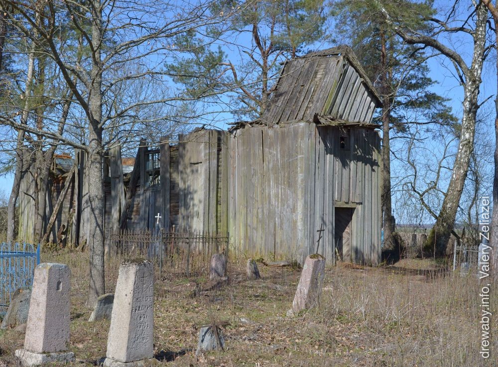 На напаўзакінутых вясковых могілках, парослых дрэвамі ды хмызнякамі, яшчэ нядаўна стаяла драўляная каплічка. Унутры нейкім цудам захаваўся старажытны роспіс, а над уваходам - надпіс: «Paswacona ta Cerkwa 1777».