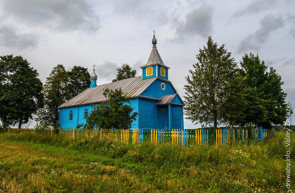 Царква вырашана прамавугольным у плане працяглым зрубам, накрытым двухсхільным дахам, пераходзячым над трохграннай апсідай у вальмавы. З боку франтальнага фасада ў дах урэзана чатырохгранная шатровая званіца з макаўкай, над апсідай узведзены цыбулепадобны купалок на васьмігранным барабане. Арачны ўваходны праём аформлены чатырохслуповым ганкам пад двухсхільным пакрыццём; над ім у цэнтры трапецападобнага фігурнага зашытага шчыта круглая люкарна. Гарызантальна ашаляваныя фасады апяразаны разным падзорам, рытмічна расчлянёны арачнымі аконнымі праёмамі ў простых дашчаных ліштвах і брусамі-сцяжкамі ў прасценках.