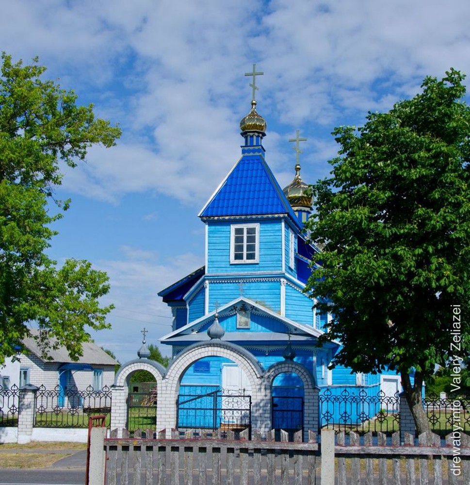 Помнік народнага дойлідства, храм базілікальнага тыпу. Вырашана працяглым прамавугольным у плане зрубам, накрытым вальмавым дахам, завершаным па цэнтры цыбулепадобнай галоўкай. З усходу далучана пяцігранная апсіда з бакавой рызніцай, з захаду — прамавугольны прытвор, над якім у другой палавіне XX стагоддзя ўзведзена двух’ярусная чатырохгранная шатровая званіца з макаўкай. Гарызантальна ашаляваныя бакавыя фасады расчлянёны лучковымі аконнымі праёмамі і брусамі-сцяжкамі ў прасценках, апяразаны цокальным поясам з вертыкальнай шалёўкай.