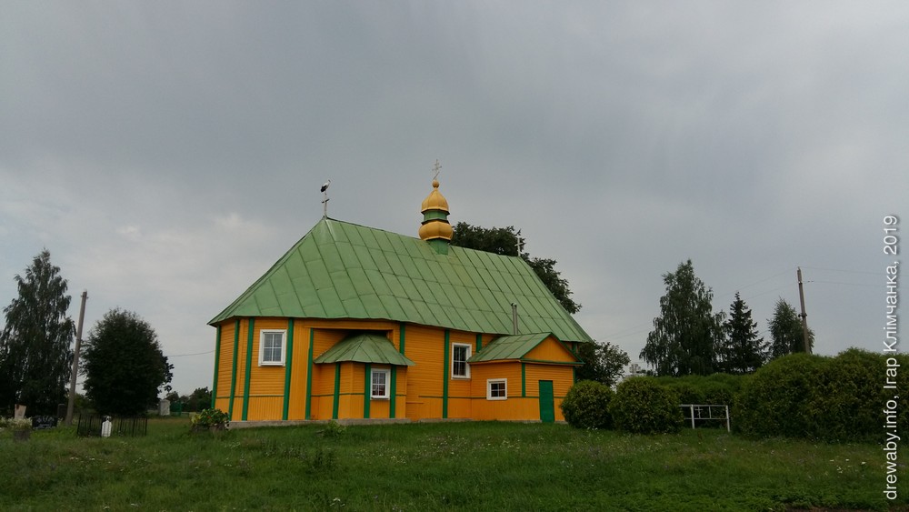 Першапачаткова храм быў грэка-каталіцкім. У архітэктуры храма захавалася банька - уласцівая для беларускай драўлянай архітэктуры форма купала на храме. Некаторыя сцьвярджаюць, што банькі характэрныя для драўлянай архітэктуры эпохі барока на нашых землях. Фотаздымкі зроблены ў пачатку мая 2016 года. Таксама ў альбом дададзены здымак цікавай глінабітнай пабудовы, якая стаіць недалёка ад згаданай царквы.