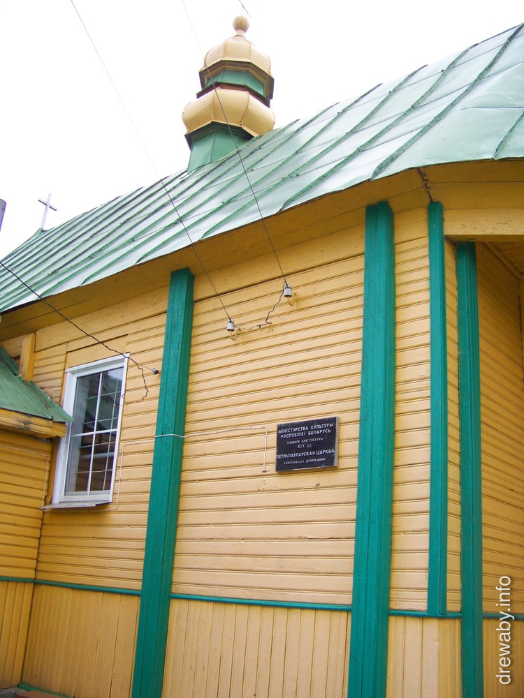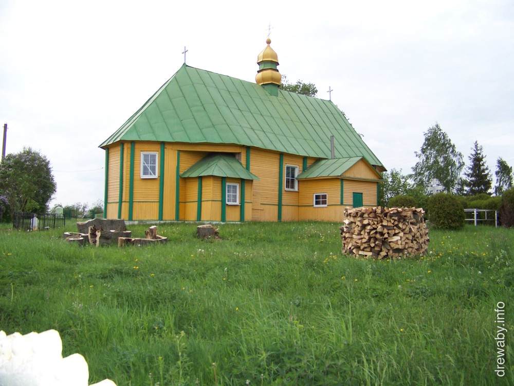 Першапачаткова храм быў грэка-каталіцкім. У архітэктуры храма захавалася банька - уласцівая для беларускай драўлянай архітэктуры форма купала на храме. Некаторыя сцьвярджаюць, што банькі характэрныя для драўлянай архітэктуры эпохі барока на нашых землях. Фотаздымкі зроблены ў пачатку мая 2016 года. Таксама ў альбом дададзены здымак цікавай глінабітнай пабудовы, якая стаіць недалёка ад згаданай царквы.