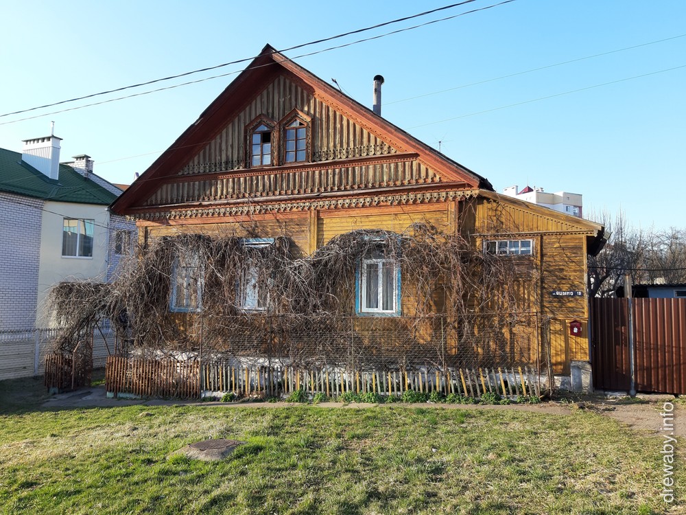 Адзін з найбольш захаваных драўляных жылых дамоў у гістарычным цэнтры, асабліва вылучаецца дэкор (т.з. магілёўская разьба) франтона з традыцыйным для Магілёва спараваным акном.