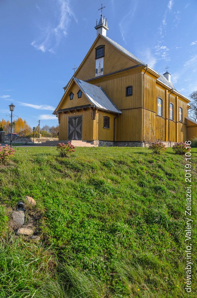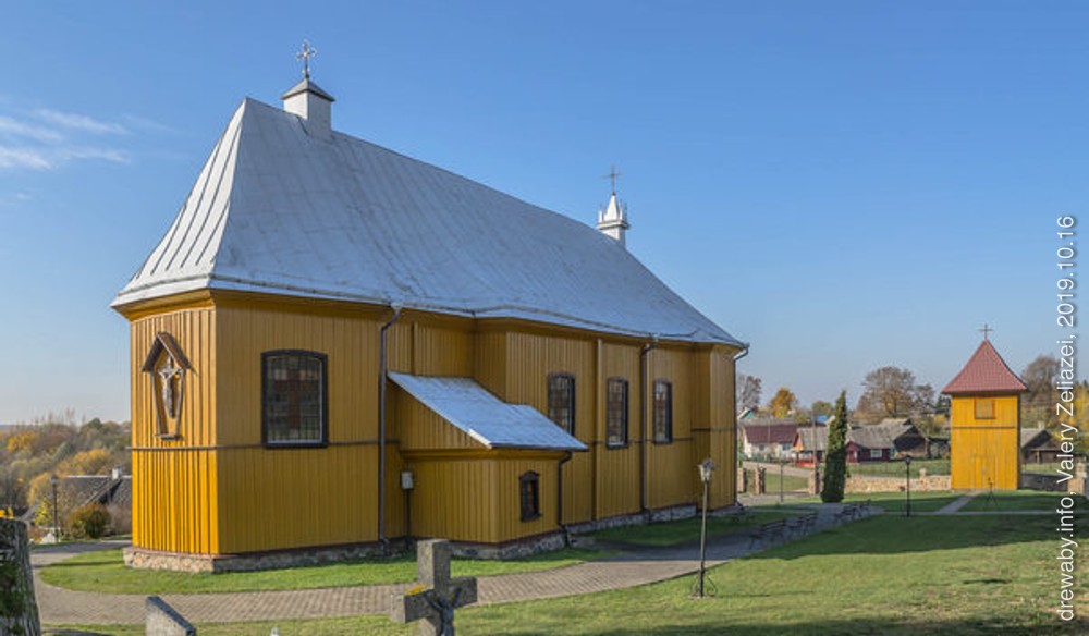 Пабудаваны ў 1764 г. на ўсходняй ускраіне вёскі з дрэва пры кляштары кармелітаў босых, фундаваным Юзафам Крыштофам і Людвікай (з Сулістроўскіх) Войнамі. Кляштар скасаваны ў 1832 г., жылы будынак разбураны, касцёл ператвораны ў капліцу. Парафія адноўлена ў 1906 г., потым зноў скасавана. Адноўлена ў 1990 г. Асобна ад касцёла ў вуглу бутавай агароджы 1900-я гг. пастаўлена каркасная шатровая званічка. Прастольнае свята 16 ліпеня.