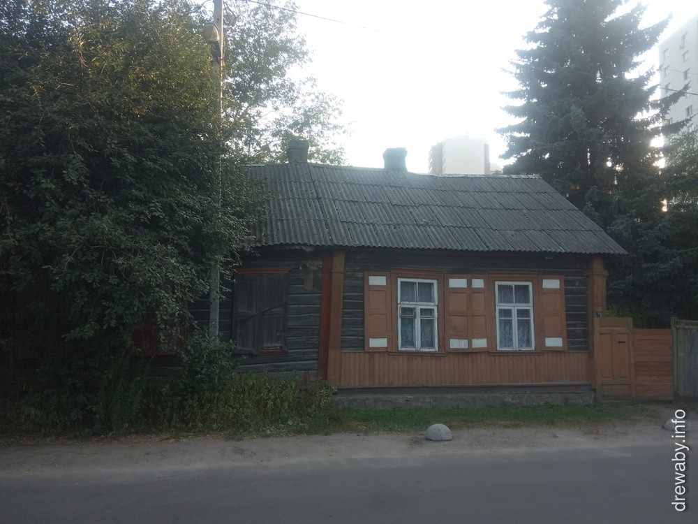 Пабудаваны з паўбруса з вугламі ў астачу. Вуглы зашыты дошкамі, утвараючы падабенства калон, з простым профілем у верхняй частцы. Аканіцы з квадратнымі філёнкамі. На галоўным фасадзе правай (ад вуліцы) палавіны дома на ўзроўні першых чатырох вянкоў - шаляваны вагонкай пояс.